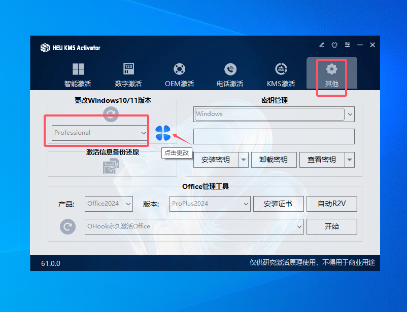 2. 将系统转为专业版: 点击“其他-选择Professional”